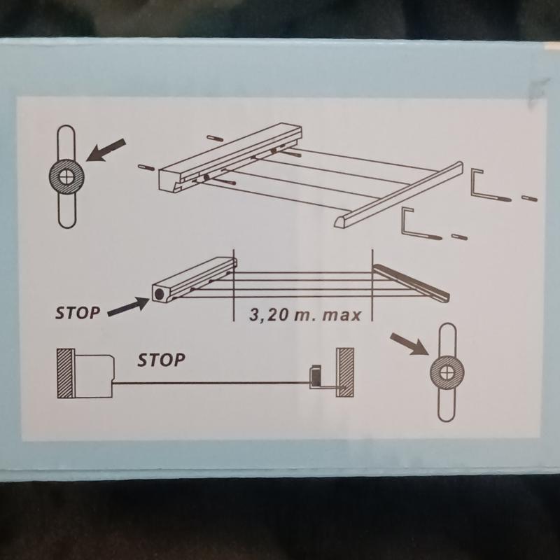Вешалка имеет пластиковый корпус, внутри которого на штангу намотано четыре веревки, каждая длиной до 3.2 метра. Веревки извлекаются из корпуса по планке, к которой они крепятся, и их можно зафиксировать на любой вытянутой длине. Корпус вешалки крепится на стену, а на противоположной стене устанавливаются два крючка, за которые зацепляется планка с веревками. Высушив белье можно снять планку с крючков и автоматическим механизмом смотать веревки в корпус.