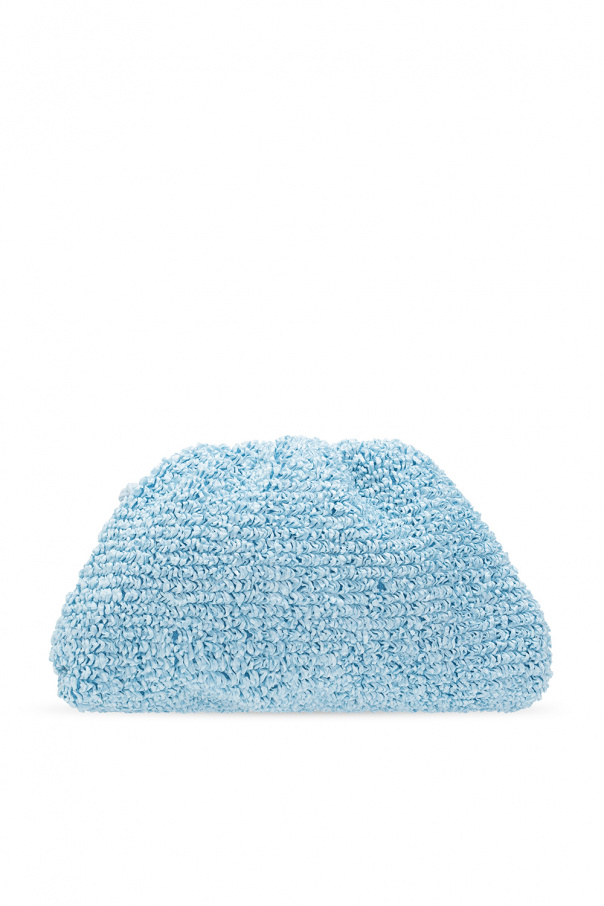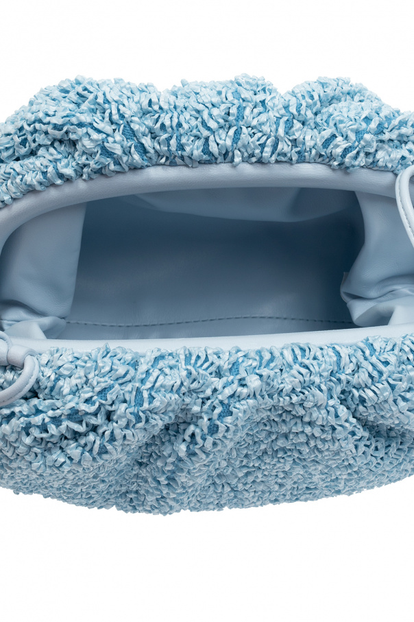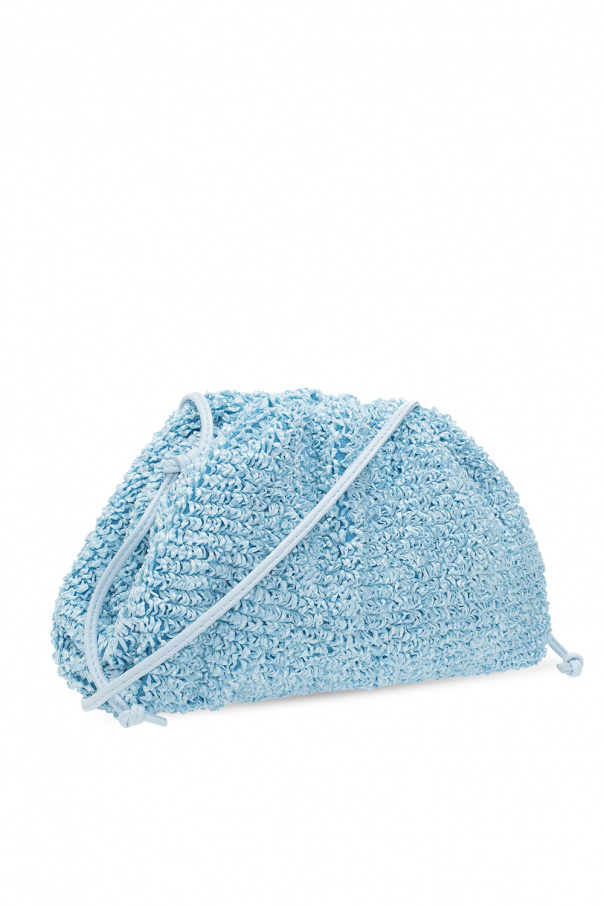 Light blue ‘The Mini Pouch’ shoulder bag from Bottega Veneta. Crafted from textured material, this design fastens via a magnetic snap and features leather trims, a leather shoulder strap and one internal compartment.
