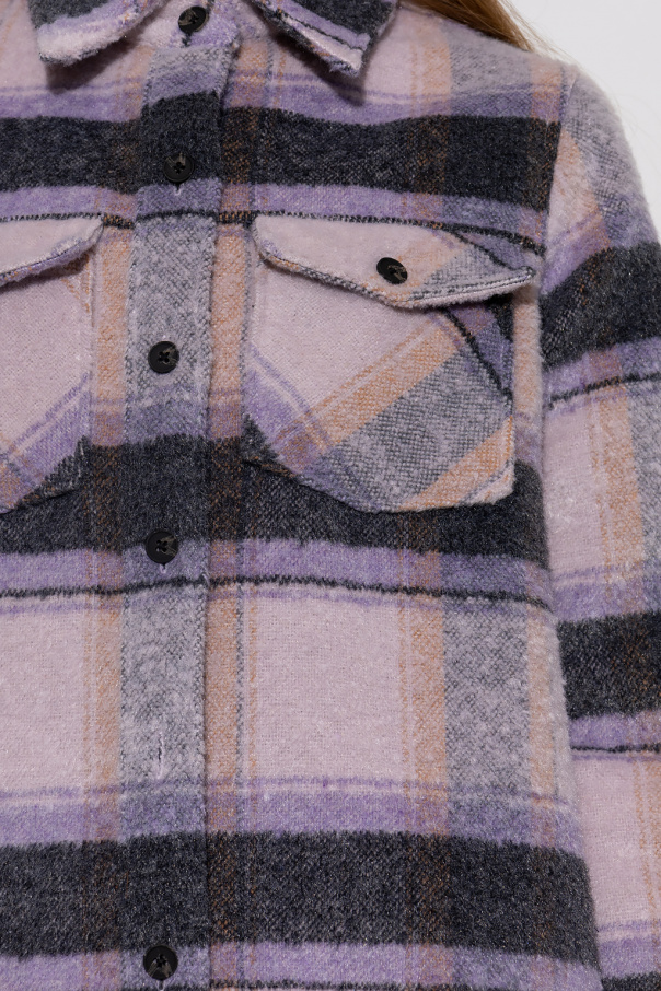 Purple, pink and grey ‘Phoebe’ loose-fitting shirt from AllSaints. Fastened with buttons, this garment features a multicolored check, two flap pockets and long sleeves with button cuffs.