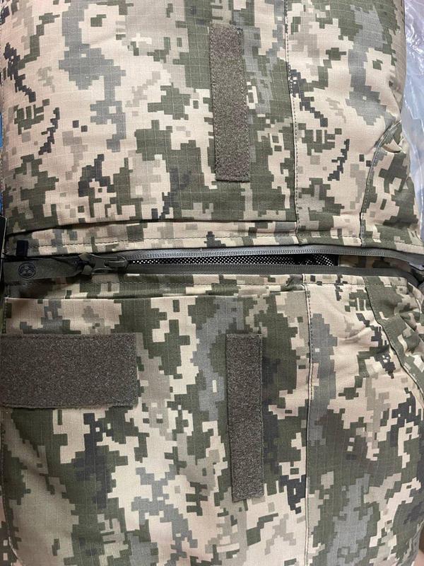 Внешний материал куртки: ткань Rip-Stop (рип-стоп). Эта ткань изготавливается путем специфического переплетения нитей, благодаря чему получила сверхпрочную структуру. За счет укрепляющих нитей мелкие порезы и дырки не расходятся на такой ткани.