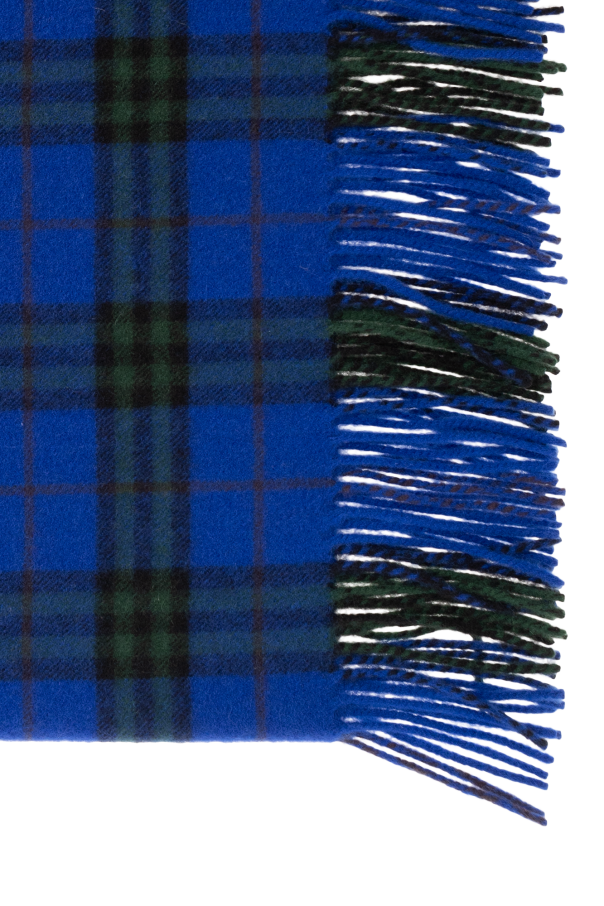 Blue, green and black scarf from Burberry. Made of cashmere, this item features a check pattern, logo and fringes.