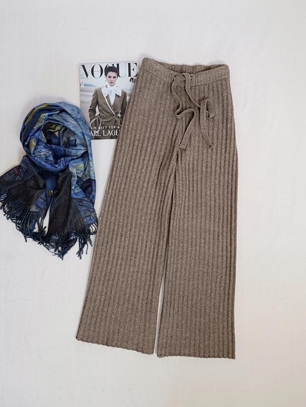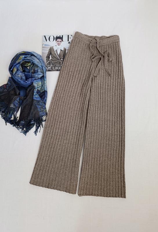 🌿широкие вязаные брюки H&M высокой посадки, талия на резинке, мягкие и теплые