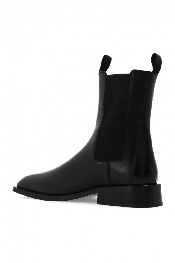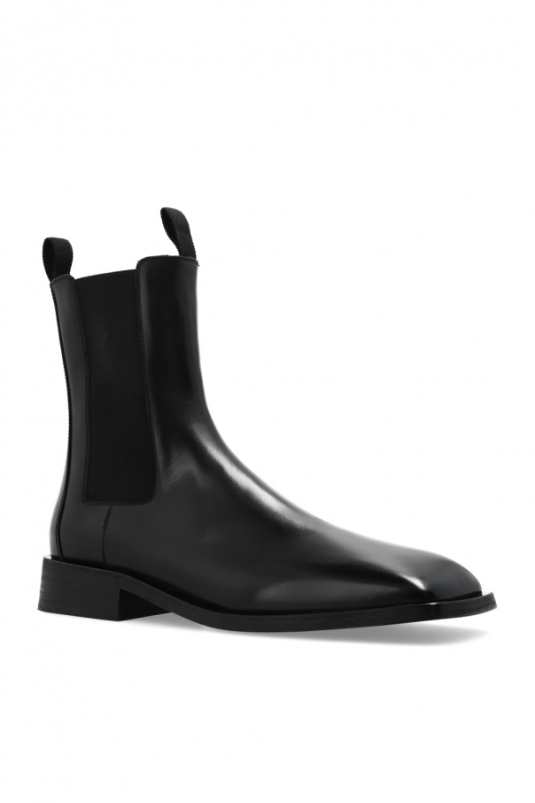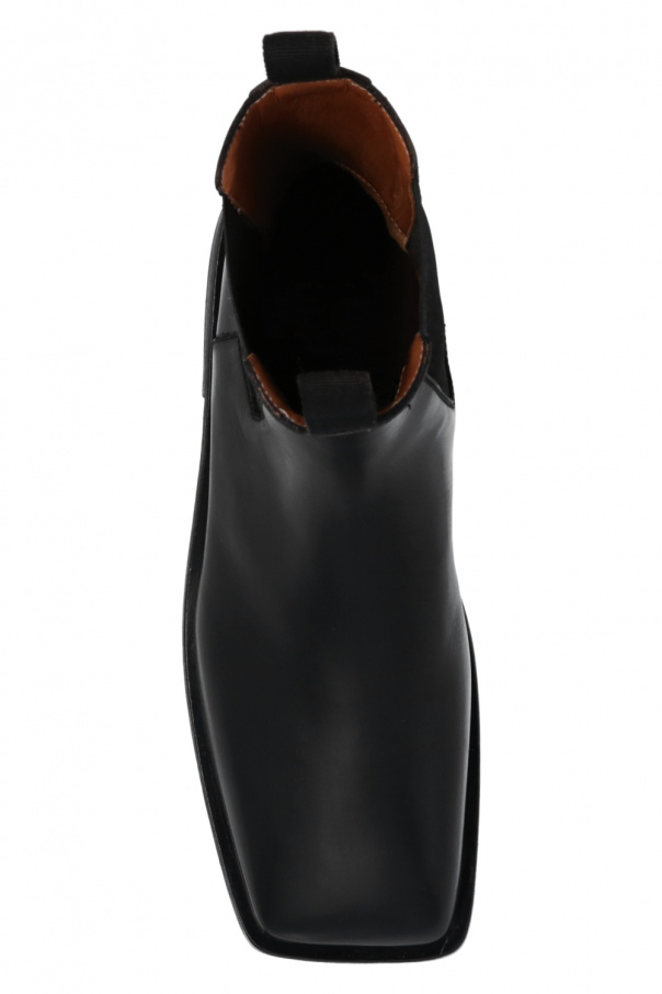 Black ‘Spatoletto’ ankle boots from Marsell. Crafted from calf leather with a slip-on silhouette, this model features rubber inserts sewn on the sides, grosgrain straps on the front and back, a round toe and a black sole in leather and rubber.