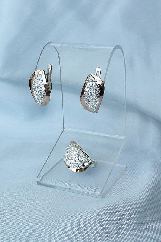 Средний вес кольца - 3,59 гр серебро 925 пробы и 0,08 гр золото 375 пробы. Серьги - 4,92 гр серебра 925 пробы и 0,21 гр золото 375 пробы.
