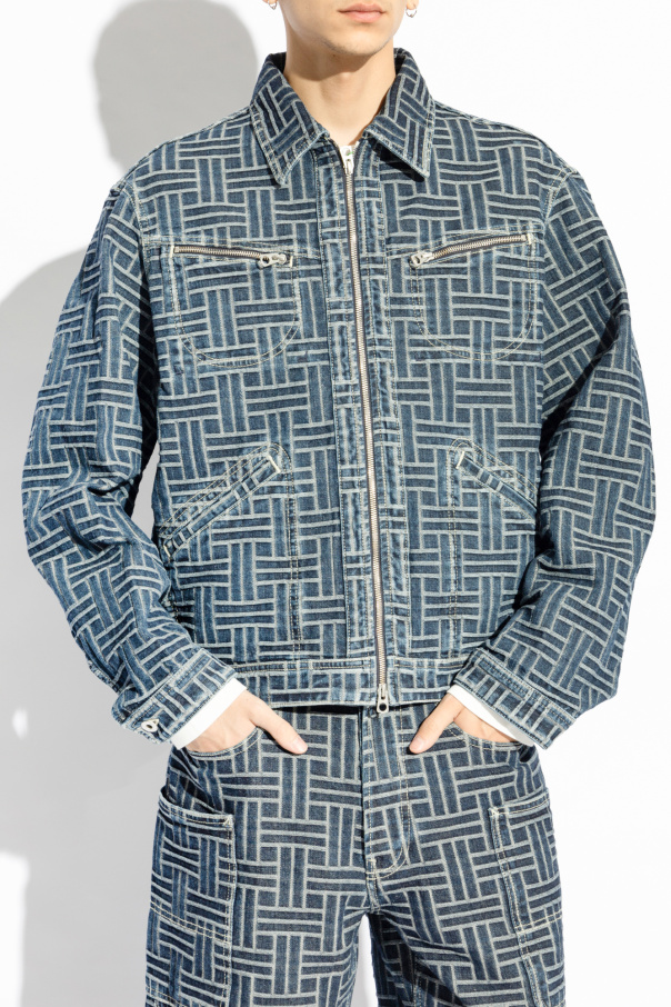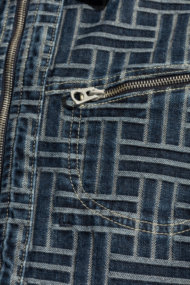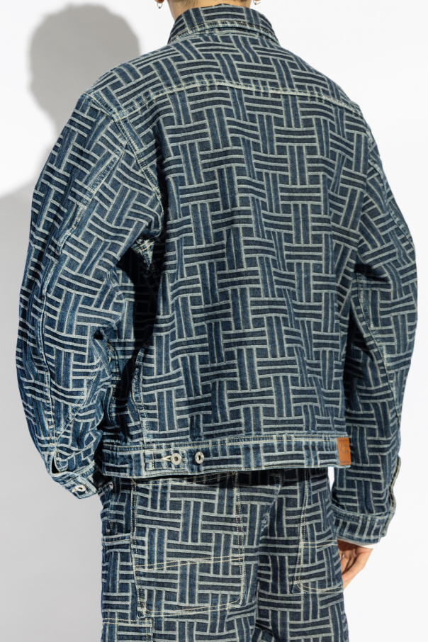 Introducing the Men's Denim Jacket from the exclusive Kenzo collection. This jacket exemplifies timeless elegance with its classic denim design, featuring straight sleeves and a straight hem. The full-length zipper closure and traditional collar add to its sophisticated appeal. The jacket is adorned with a distinctive geometric pattern composed of horizontal and vertical lines forming a uniform square motif, creating a striking visual effect. Crafted from premium blue denim, the material radiates high quality, a hallmark of prestigious fashion brands. Attention to detail is paramount in this design. The jacket boasts four pockets: two chest pockets and two side pockets, all secured with metal zippers to enhance durability and style. A leather patch at the back hem subtly showcases the brand's mark of excellence. The rich blue hue, complemented by a lighter pattern, gives the jacket a bold and refined look, making it suitable for both casual and semi-formal occasions. The inner lining features the iconic "KENZO" logo, affirming the piece's designer origins. Why Choose This Product? Timeless and sophisticated design by Kenzo High-quality blue denim material Unique geometric pattern for a modern touch Functional and stylish with four pockets Durable metal zippers and leather brand patch Perfect for both casual and semi-formal wear