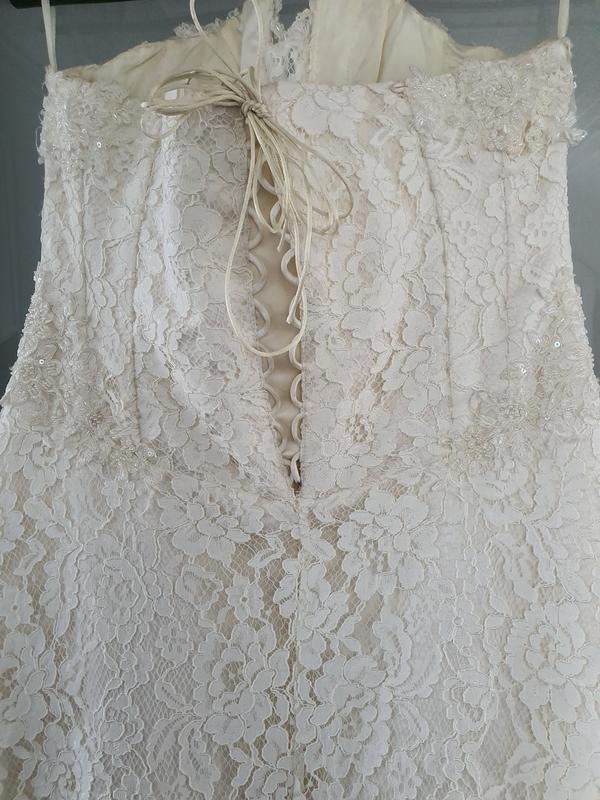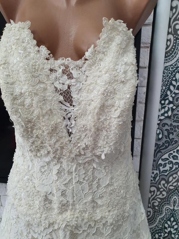 Платье бу одето 1 раз не венчано, на большую груди и параметры, с меня 120-105-115, и мягко затягивать на меньжнее по всем параметрам, цвет айвари. могу скинуть фото как было на мне.