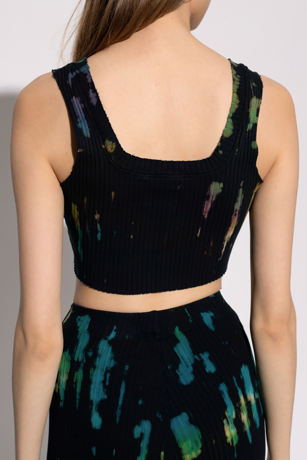 Multicoloured tank top from Cotton Citizen. Crafted from a stretch cotton blend with ribbed detailing, this style features an asymmetrical, cropped silhouette and a tie-dye motif.