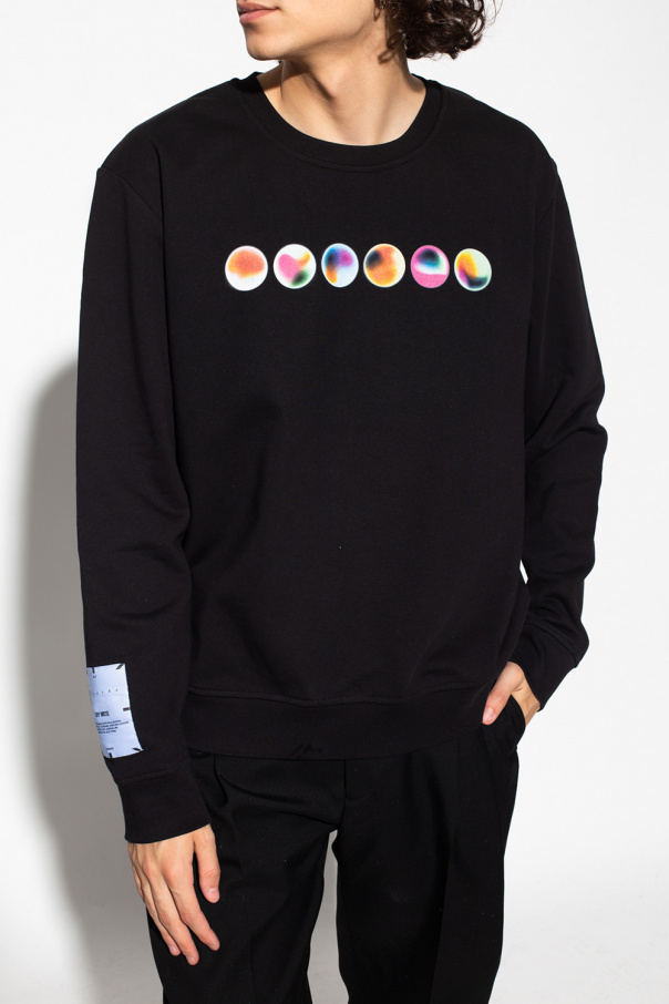 Black crewneck sweatshirt from Breathe by MCQ, the No.7 collection. Crafted from cotton jersey, this style showcases a colourful graphic print on the front, a logo patch on the sleeve and ribbed trims on the bottom hem and cuffs.