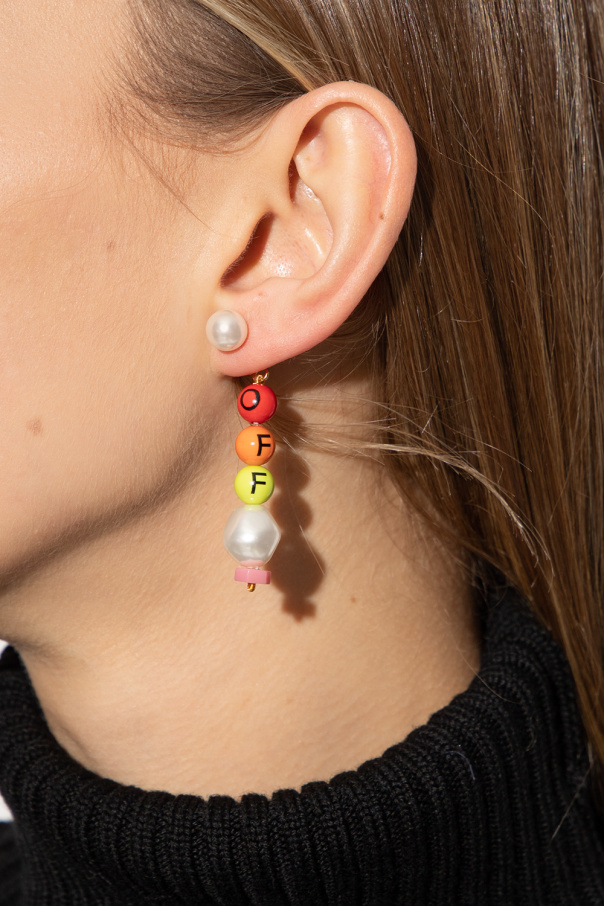 Multicolored push-back drop earrings of different lengths from Off-White. Made of brass, glass pearls and beads with logo details.