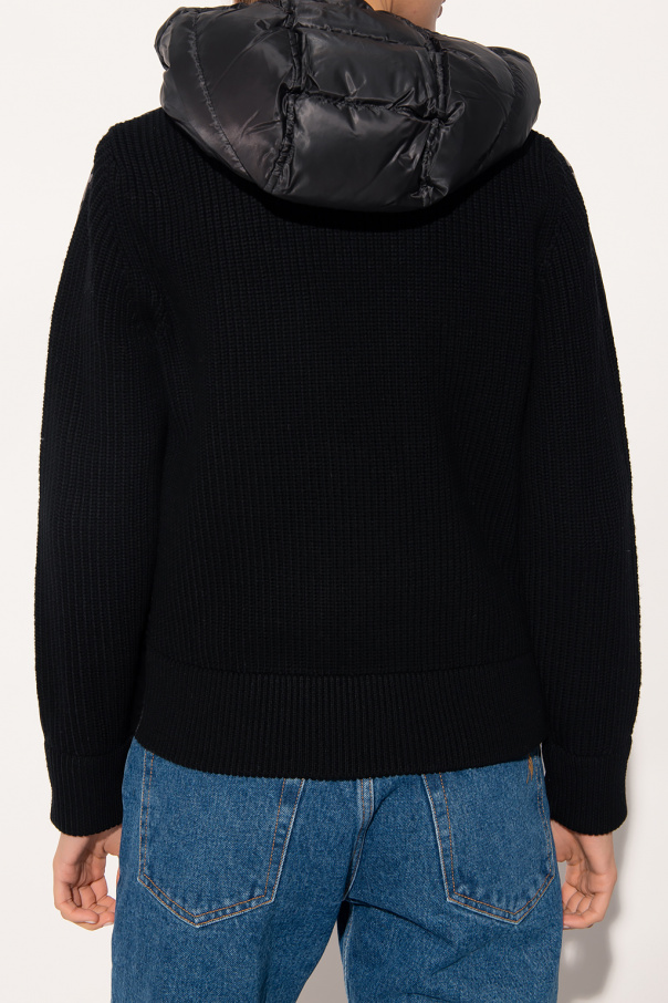 Black quilted jacket from Michael Michael Kors. Fastened with a zip, this garment features a zip fastening, drawstring hood, black and grey logo embroidery on the sleeves, ribbed cuffs and a drawstring hem.