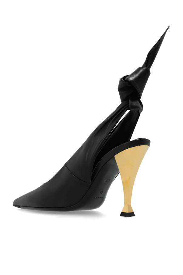 Indulge in the epitome of sophistication with the Beauw Pumps by Givenchy. These classic, elegant stilettos feature a sleek, pointed toe and a smooth, unembellished surface, exuding timeless luxury. Crafted from high-quality leather, they promise both durability and a refined appearance. One distinctive element is the decorative lacing at the back, which adds a unique flair to these otherwise minimalist shoes. The gold-colored, sculpted heel provides an exquisite contrast to the black exterior, offering an original touch that sets these pumps apart. With an open heel design, the Beauw Pumps ensure enhanced comfort, while the medium-to-high heel height elongates the silhouette for a graceful look. Solidly constructed, these shoes embody the hallmark of high-end fashion. Why Choose This Product? Exquisite design by Givenchy, a name synonymous with modern elegance and sophisticated fashion. High-quality leather construction for long-lasting wear and a luxurious feel. Unique decorative lacing and sculpted gold heel for a distinctive and stylish appearance. Open heel design for added comfort. Medium-to-high heel height to enhance and elongate your silhouette.