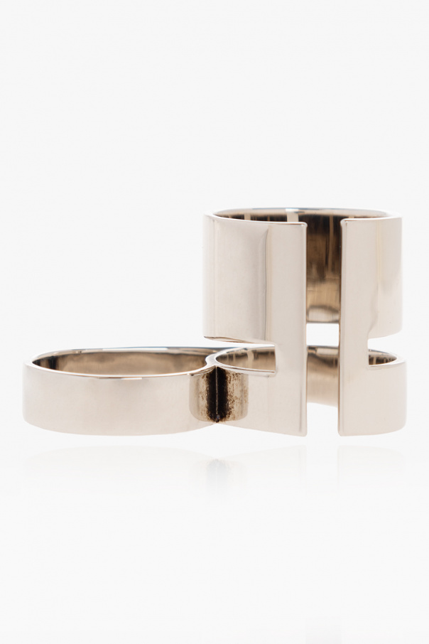 Double ring in silver-tone from Alexander McQueen. Made of brass, this item showcases an engraved logo.