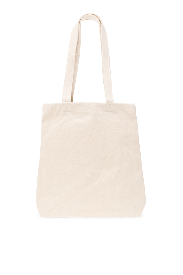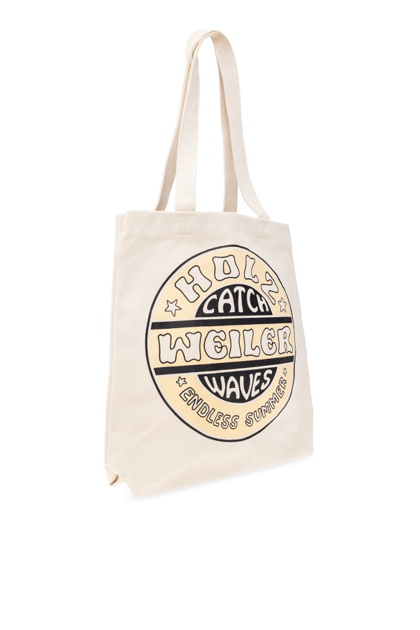 Light beige ‘Hippo’ shopper bag from Holzweiler. Crafted from cotton, this design showcases a colourful graphic pattern, two half-round handles and one internal compartment.
