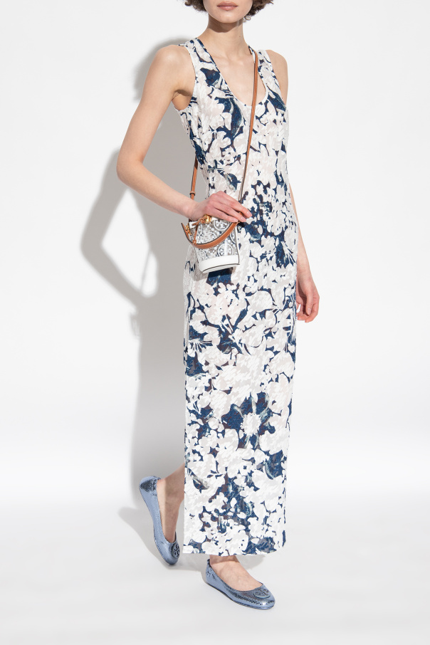 Blue ‘Minnie’ ballet flats from Tory Burch. Crafted from leather with a snakeskin effect and metallic finish, this pair features a logo detail on the front and a blue rubber sole.