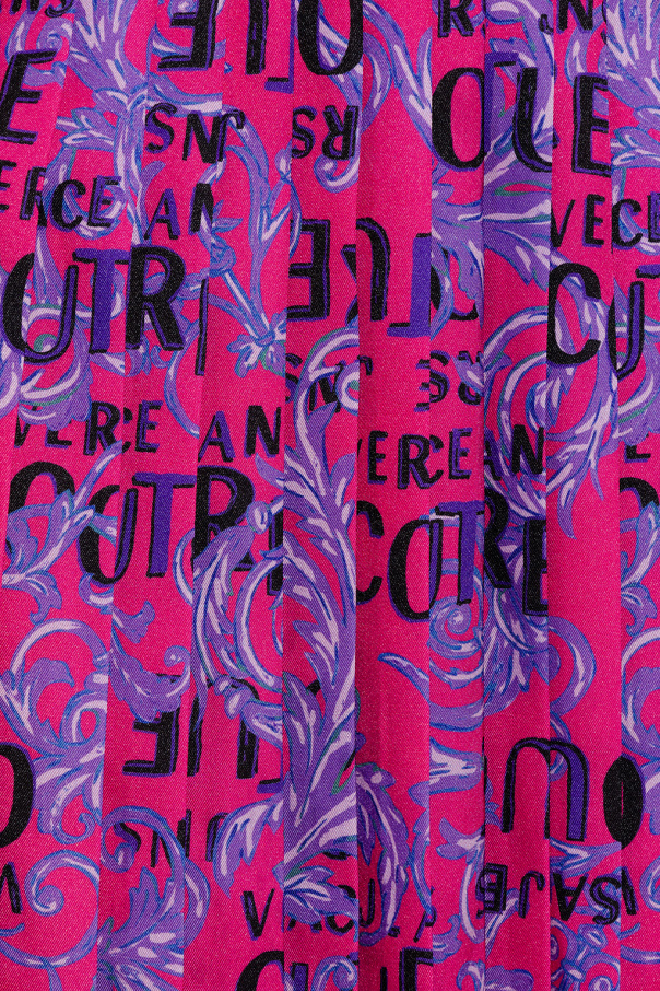 Pink, purple and black pleated skirt from Versace Jeans Couture. This design features an elastic waistband with a logo and Logo Couture pattern.