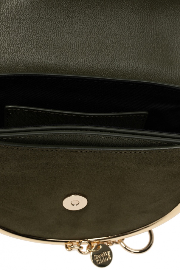 Dark green ‘Mara’ shoulder bag from See By Chloé. Crafted from cow leather and trimmed in suede, this design secures with a magnetic snap and showcases a decorative charm and an embossed logo on the front, a chain-reinforced shoulder strap, gold-tone metal hardware and a cotton-clad interior with one compartment, two slip pockets and a card slot.