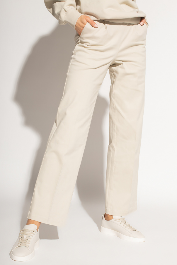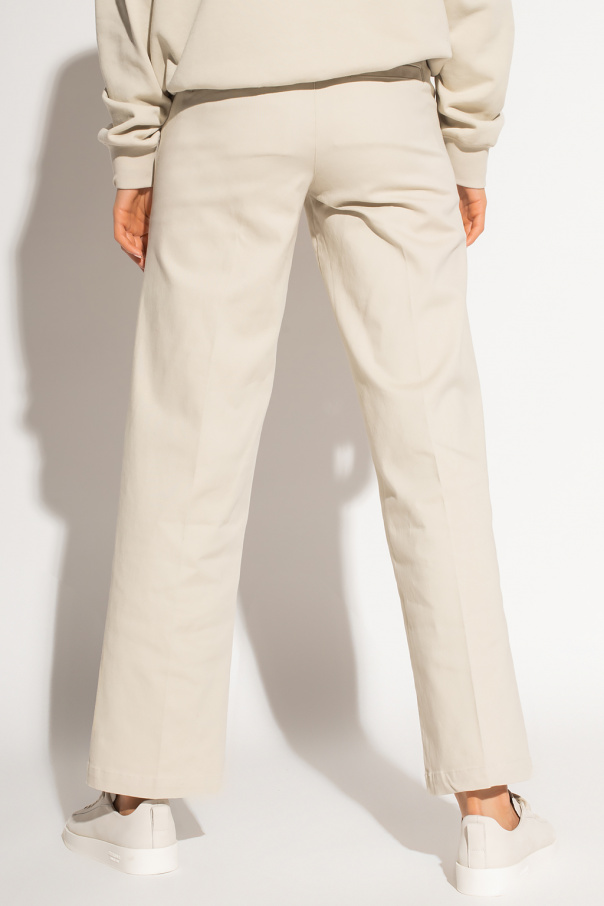 Greyish-beige trousers from Fear Of God Essentials. Crafted from cotton with a high-waisted silhouette, this pair features an elasticated waistband with a logo, four slip pockets and straight legs.