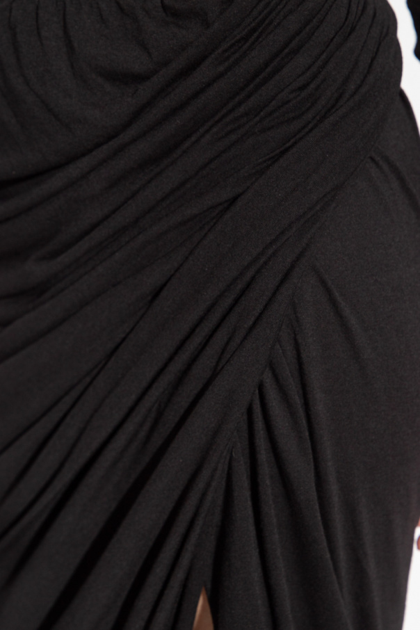 Black ‘Vered’ asymmetric skirt from Rick Owens Lilies. Made of stretchy fabric, this design features an elastic waistband and decorative draped details.