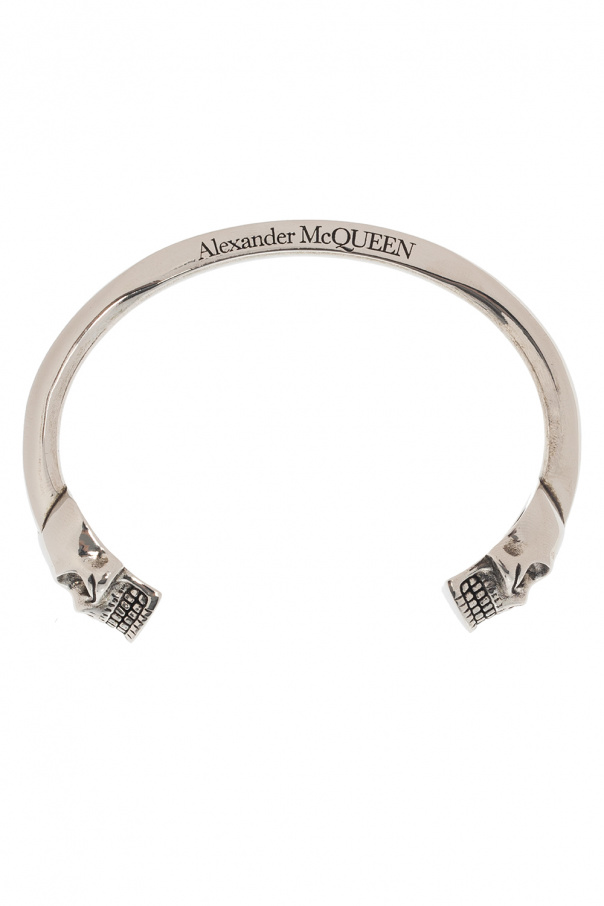 Silver-tone bracelet from Alexander McQueen. Made of brass, this item features the iconic skull appliqué and logo detail in black.