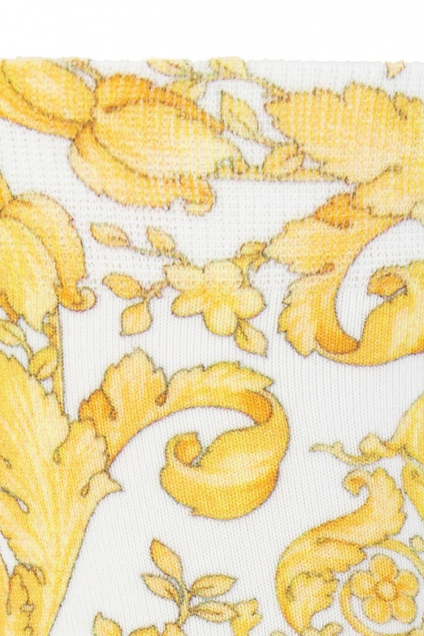White socks from Versace. Crafted from cotton, this design is decorated with a printed pattern in yellow and black.