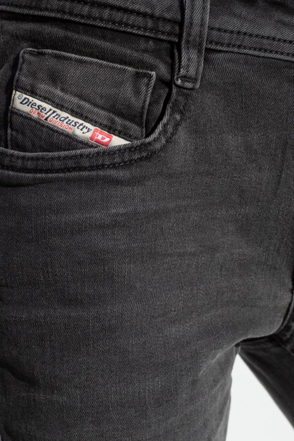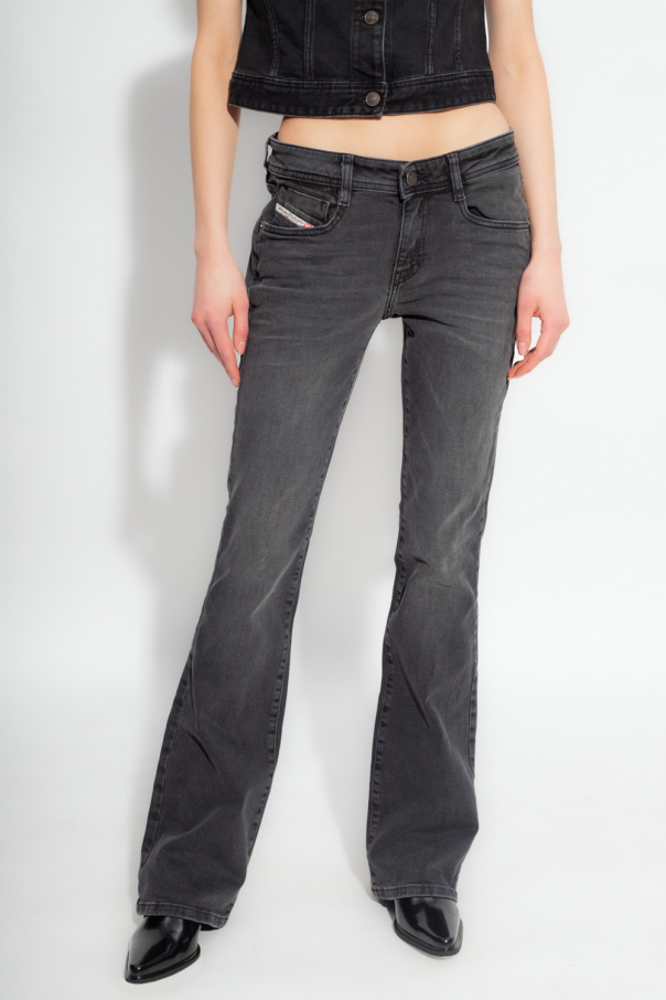 Dark grey ‘1969 D-EBBEY-SP L.32’ jeans from Diesel. Made of cotton, this slim fit pair features a zip and button closure, five slip pockets and flared legs.