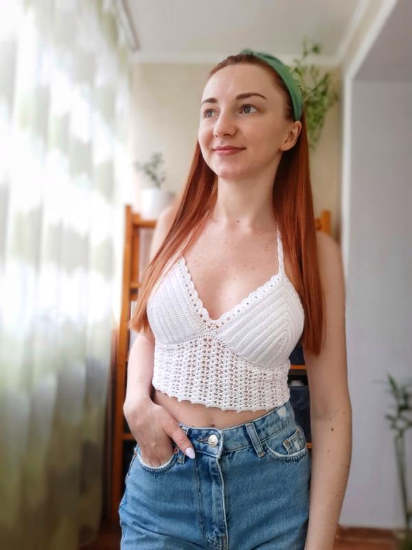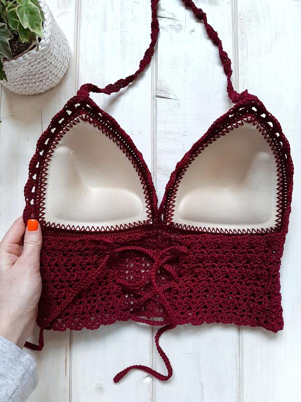 Крутий топ зв'язаний крючком, ручної роботи. вяжу в різних кольорах та розмірах. чашки можуть бути з пуш ап, або без. регулюється зав'язками.