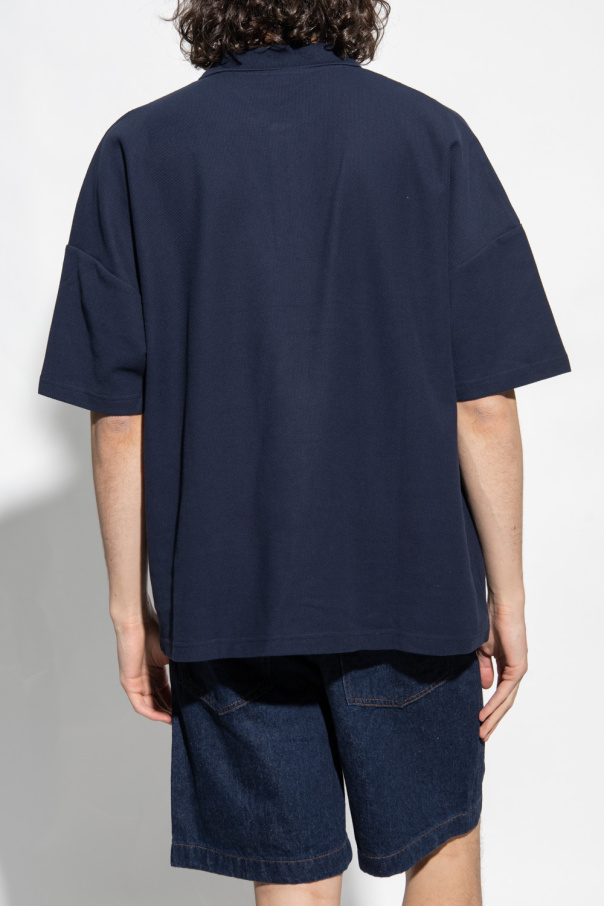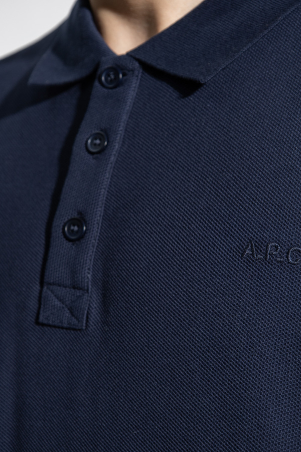 Navy blue polo shirt from A.P.C. Crafted from cotton, this style features an embroidered logo, a button placket and elasticized trims on the collar and short sleeves.