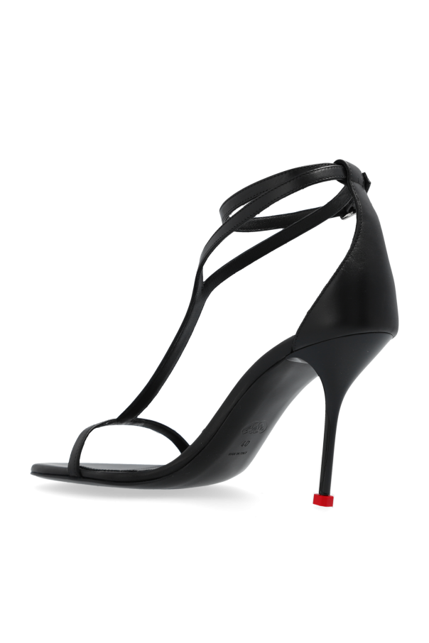Introducing the epitome of refinement and sophistication, the Alexander McQueen High Heeled Sandals. Crafted with meticulous attention to detail, these sandals are a testament to the brand's commitment to luxury and elegance. The dominant black hue exudes timeless grace, while the smooth leather material of the exterior and interior layers promises not only a high-quality finish but also durability and comfort. The sandals' design features a sleek silhouette with slender straps gracefully wrapping around the midfoot and ankle, culminating in an adjustable buckle for a perfect fit. The stiletto heel accentuates the elegance of the sandals, making them an ideal choice for any upscale event. The minimalist aesthetic, devoid of extraneous decorations, aligns with the contemporary trend towards simplicity and refined taste. A subtle yet significant detail is the designer's logo on the ankle strap, signifying Alexander McQueen's hallmark of exclusivity. Moreover, the unique inclusion of a red fleck on the heel and the black sole made from a combination of leather and rubber not only adds an intriguing visual element but also ensures stability and longevity. These sandals are a brilliant blend of aesthetics and practicality, embodying the designer's innovative spirit. Why Should You Purchase This Product? Exquisite craftsmanship from high-quality leather Elegant and timeless design with a modern twist Adjustable ankle strap for a customizable and comfortable fit Unique red fleck on the heel adds a touch of distinctive charm Emblematic Alexander McQueen design, ensuring exclusivity and prestige