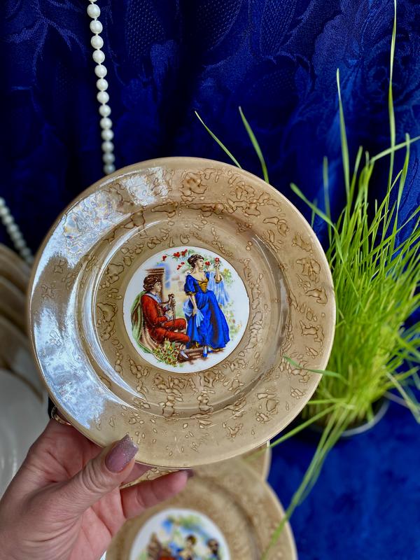 Хрустящий легкий фаянс, деколь в виде лирических сцен, люст по ободку! Диаметр - 17,5 см, для гарнира и вторых блюд.