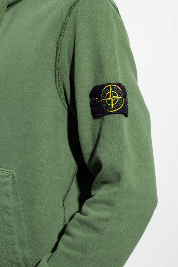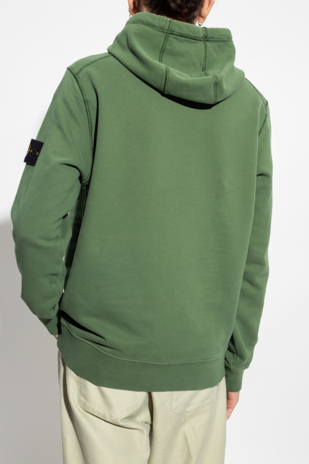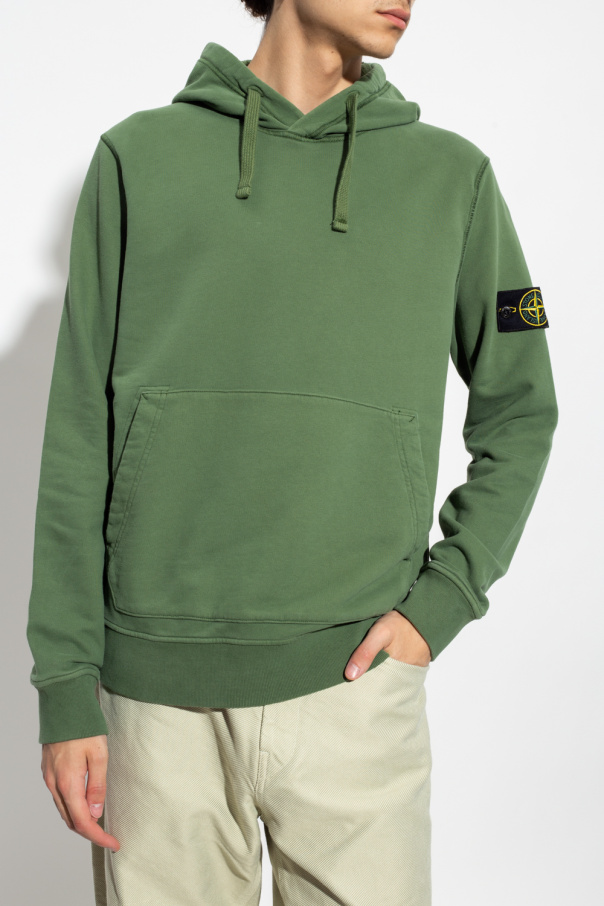 Green sweatshirt with a drawcord-adjustable hood from Stone Island. Crafted from cotton jersey, this style features a black, green and yellow logo patch, a kangaroo pocket and elasticized trims on the bottom hem and cuffs.