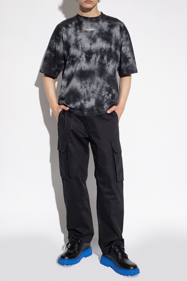 Black ‘Sponge’ Derby shoes from Off-White. Crafted from leather, this lace-up model sits on a chunky rubber sole in blue and features an embossed logo on the tongue.