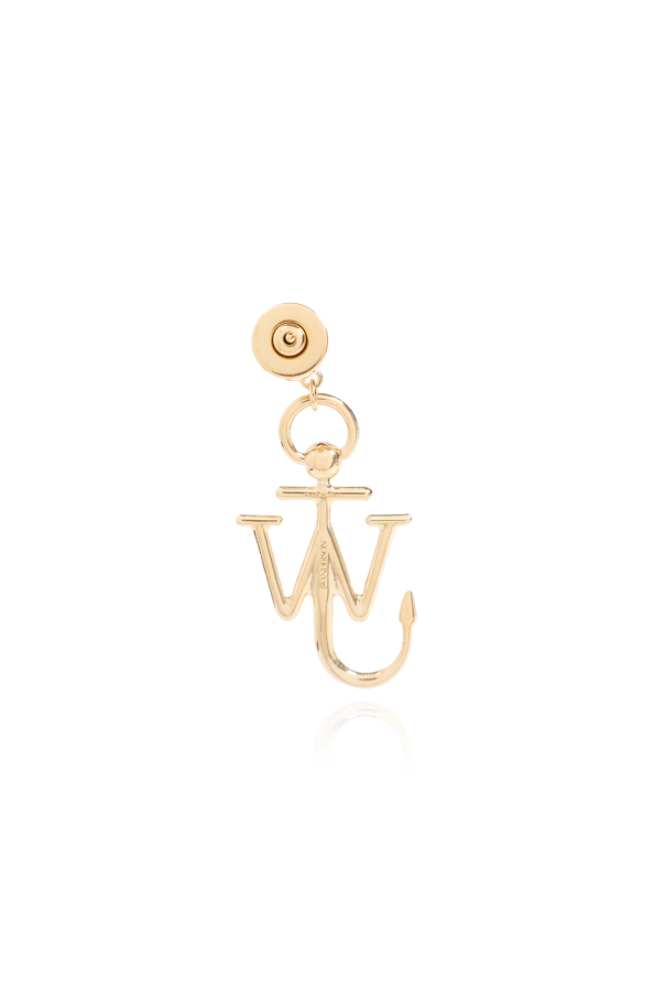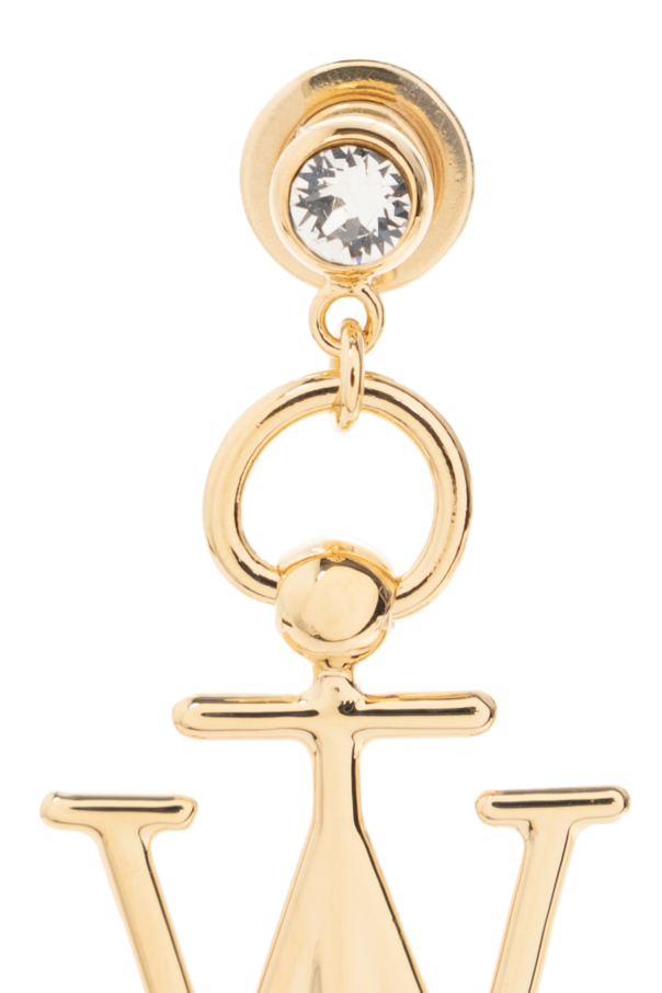 Gold-tone mono earring from JW Anderson. Made of eco brass, this item fastens via a push-back closure and showcases a crystal and a logo charm.