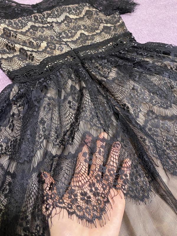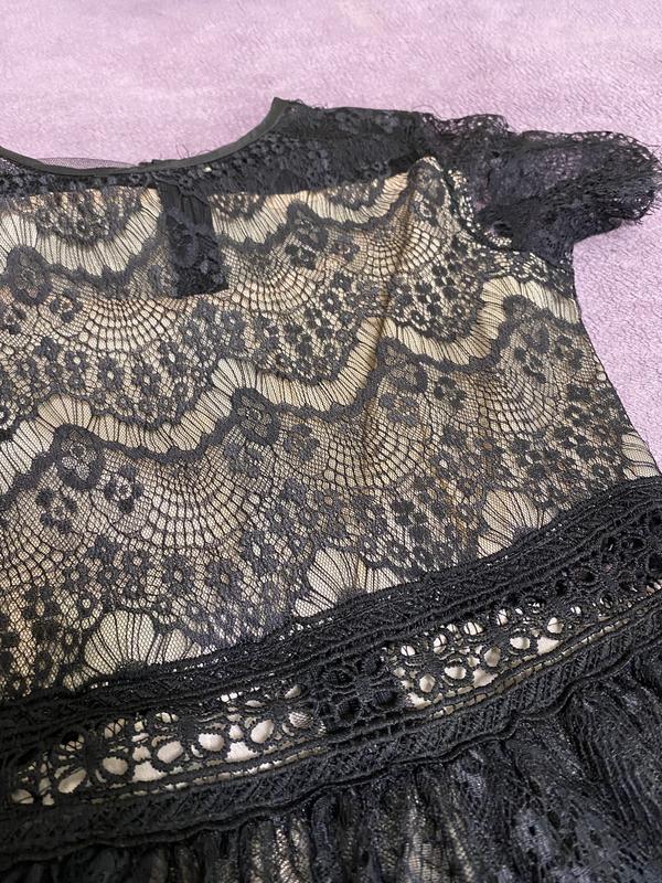 Платье имеет очень много кружева, не просвечивает, есть подкладка и сзади молнияСостояние: ИдеальноеЦвет:- Чёрный