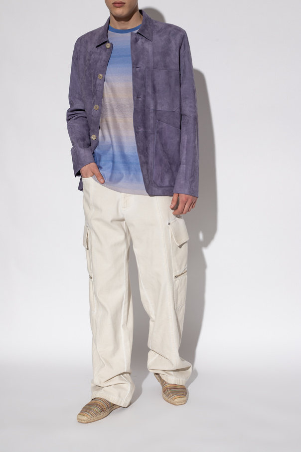 Multicolored ‘Clemons’ espadrilles from Paul Smith. Made of fabric, this design features a stripe pattern and beige rubber sole with woven jute.