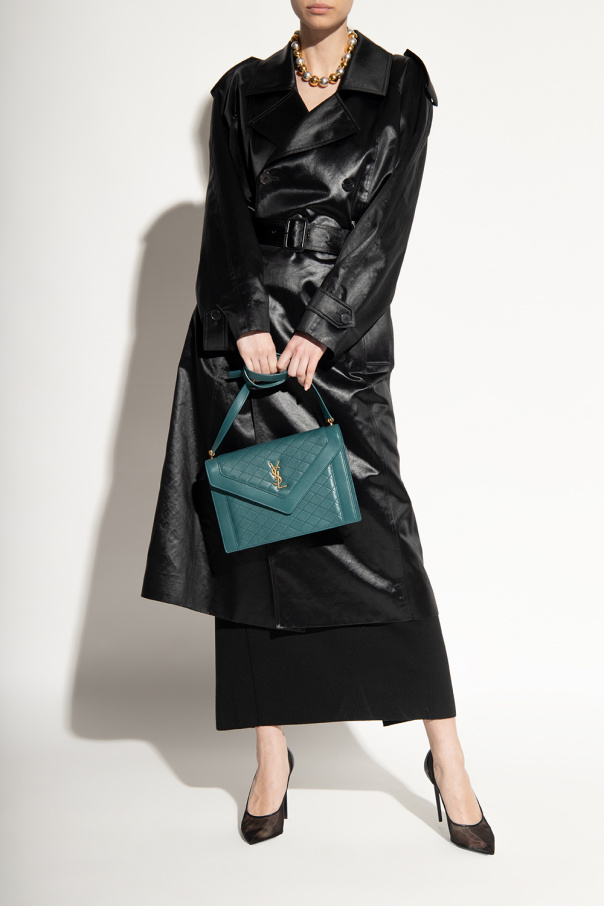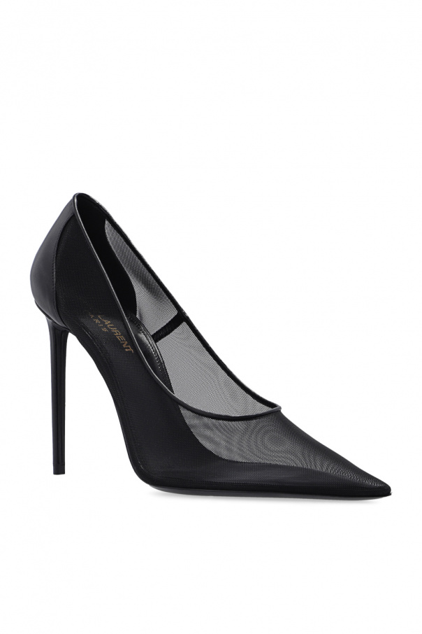 Black ‘Anja’ stiletto pumps from Saint Laurent. Crafted from tulle, this pointed tie design features a leather insert at the heel and black leather sole.