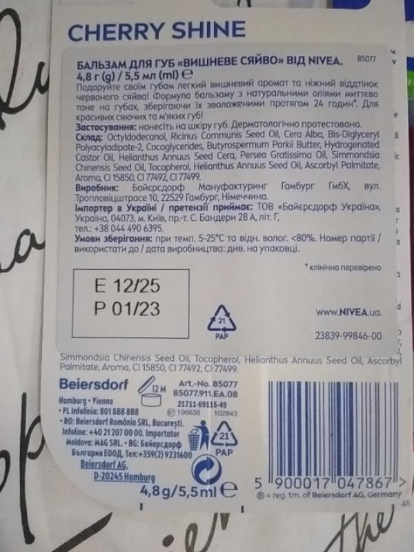 Преимущества бальзама для губ "Фруктовое сияние. Вишня" от бренда Nivea: