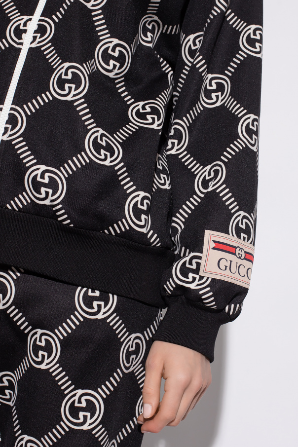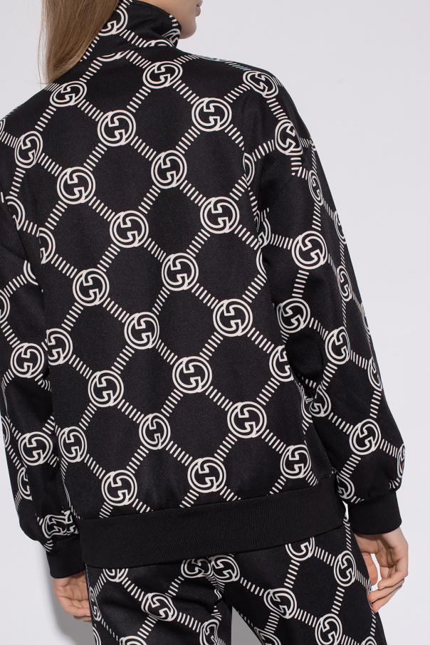 Black sweatshirt with a standing collar from Gucci. Embellished with the brand's signature ‘Interlocking G’motif in white, this style features a white zipper, two slip pockets and an elasticated bottom hem and cuffs.