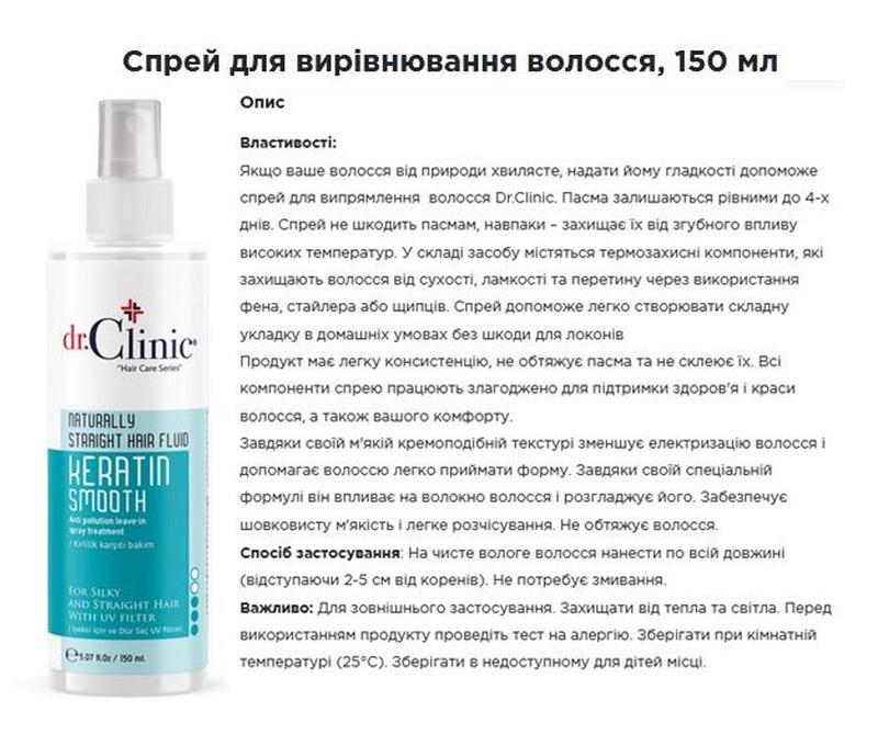 Спрей для вирівнювання волосся Dr.Clinic, 150мл
