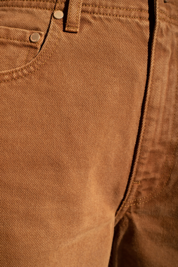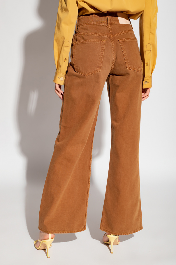 Brown ‘Elodie’ jeans from Ulla Johnson. Fastened with a zip and button, this high-waisted pair has wide legs, logo-embossed patch at the back, three front pockets and two back pockets.