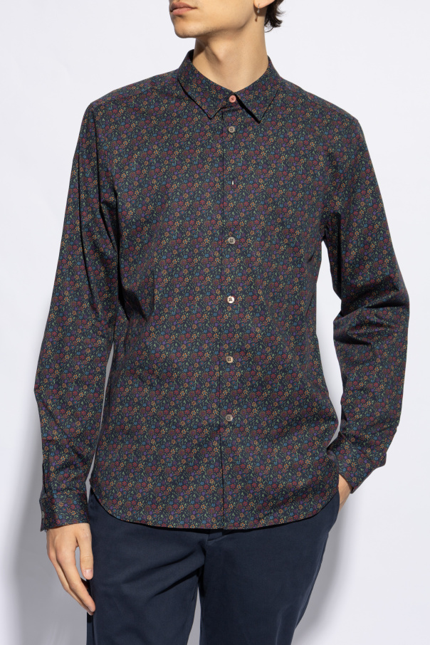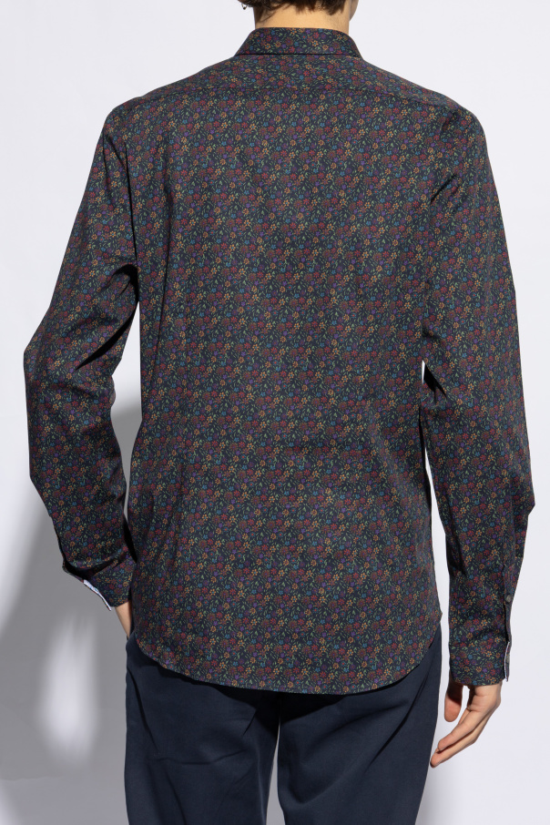 Introducing the epitome of sartorial elegance: the Floral Motif Shirt by PS Paul Smith. Crafted from the finest 100% cotton, this shirt exudes a luxurious feel and unparalleled comfort. Its navy hue serves as a canvas to a dense, evenly distributed pattern of small, multicolored flowers, offering a vibrant and sophisticated aesthetic. The shirt boasts a classic cut, with a sharply defined collar and a standard button placket that underscores its timeless appeal. The cuffs are simple and buttoned, adhering to the traditional design of high-caliber menswear. A darker finish on the collar adds an element of elegance and contrast, enriching the overall design. Meticulously matched buttons blend seamlessly with the shirt's background, showcasing an attention to detail that is second to none. With no visible branding or logos, the Floral Motif Shirt stands as a testament to understated luxury and design purity. Its presentation on a model across various photographs further reveals its flattering fit and the way it gracefully drapes over the silhouette, confirming the observations of its color, pattern, and refined details such as the buttons and contrasting collar. Why Purchase This Product? Exclusive Design: The dense, floral pattern set against a navy background offers a unique and attractive look. High-Quality Material: Made from 100% cotton, it promises breathability and comfort for all-day wear. Attention to Detail: From the contrasting collar to the perfectly matched buttons, every aspect has been crafted with precision. Timeless Elegance: The classic cut and sophisticated design ensure that this shirt remains a staple in any gentleman's wardrobe.