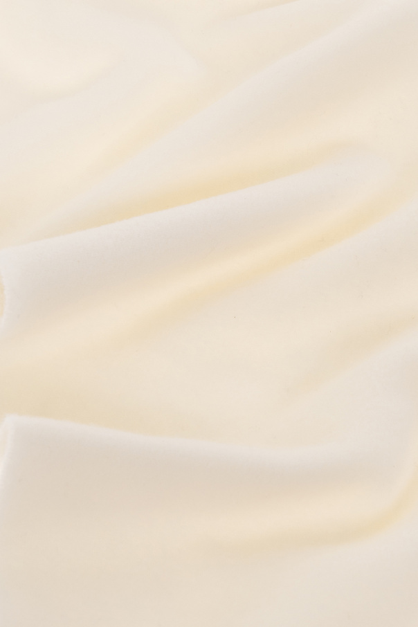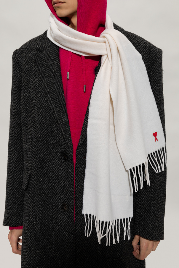 Cream scarf from Ami Alexandre Mattiussi. Crafted from wool, this item features a red logo patch and fringed edges.