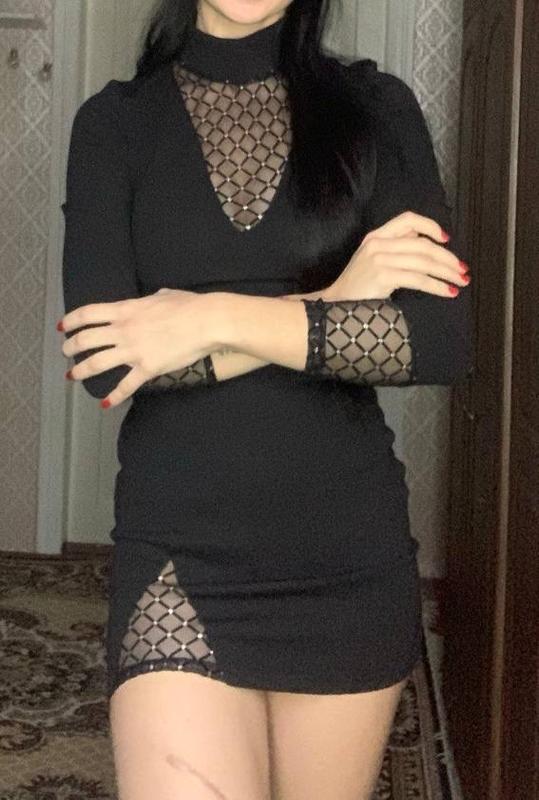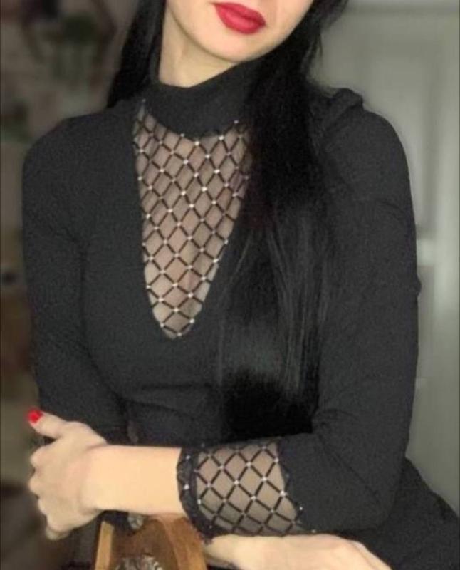 приталенная модель, акцент на декольте- украшена сеткой и стразами.