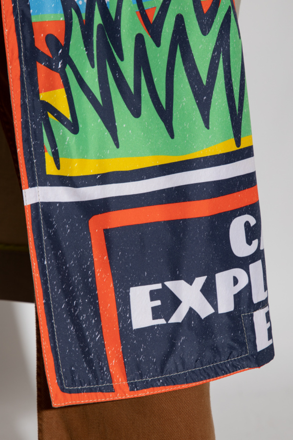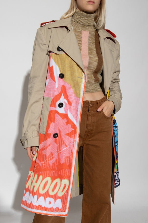 Multicolored double-breasted trench coat from Dsquared2. Crafted from cotton, this long sleeve design has a waist belt, two slip pockets and single rear vent.
