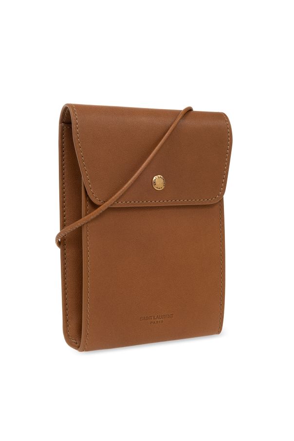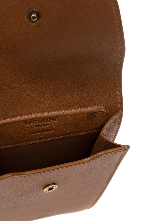 Brown ‘Paris’ shoulder bag from Saint Laurent. Crafted from calf leather, this design secures with a snap on the flap and features an embossed logo on the front. It is complete with an adjustable shoulder strap, one back slip pocket, antiqued gold-tone metal hardware and one internal compartment.