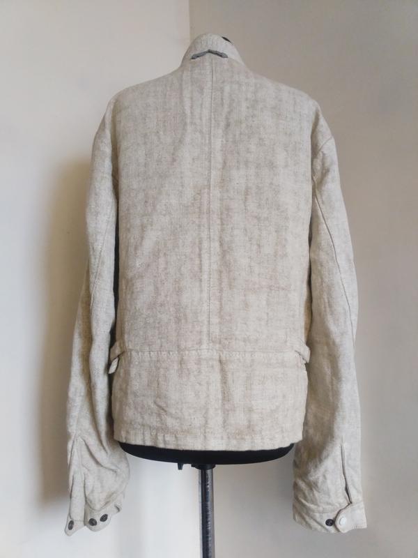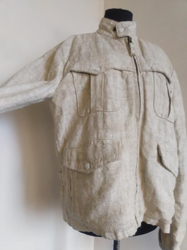 Крутой стилизованный бомбер от известного креативного бренда мужской одежды!;На подкладке, маэ вес! Мягкий плетеный лен с эффектом кастомайзинга-на натуральную ткань нанесена белая краска!! Бирки со составом не имеют. Состояние новый!Пог-57, пот-54, поб-54, плечи-48, пройма-27, рукав-67,5, длина-63