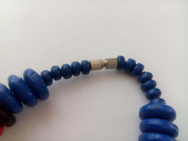 Это ручная работа одной из советских артелей, 50-60-е годы. Нанизаны на холщовую нить, застежка - металлическая винтажная шестеренка. Общая длина изделия - 50 см, диаметр бусин - 10 мм.