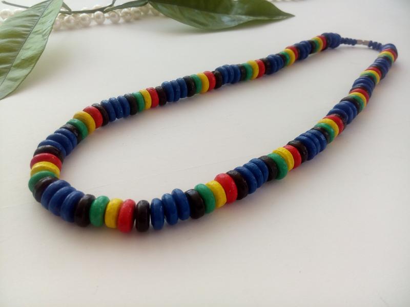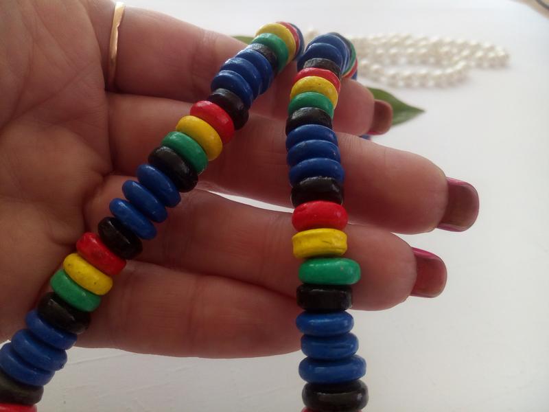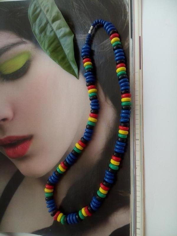 Оригинальные, единственные в своем роде, бусы советского периода "Радуга". Выполнены из бусин-таблеток папье-маше - плотное вещество из бумажной массы, смешанной с гипсом, покрыты эмалью.