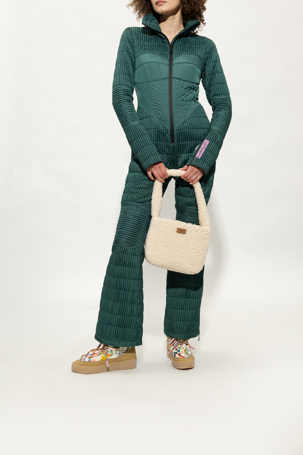 Cream snow boots from Khrisjoy. Crafted from insulated technical material, this model sits on a beige rubber sole and showcases a colourful graphic pattern, beige suede trims, woven drawstring fastenings and an embossed logo at the back.