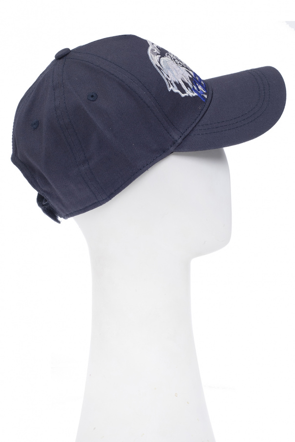 Navy blue baseball cap from Kenzo Kids. Made of cotton, this item features graphic embroidery with the brand's logo and a velcro adjuster at the back.