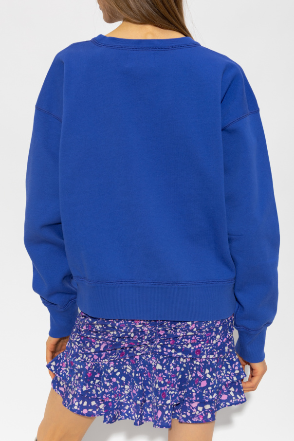 Dark blue ‘Mobyli’ crewneck sweatshirt from Marant Etoile. Made of cotton jersey, this style features a velvet-flocked logo appliqué on the front and ribbed trims on the collar, bottom hem and long sleeves.